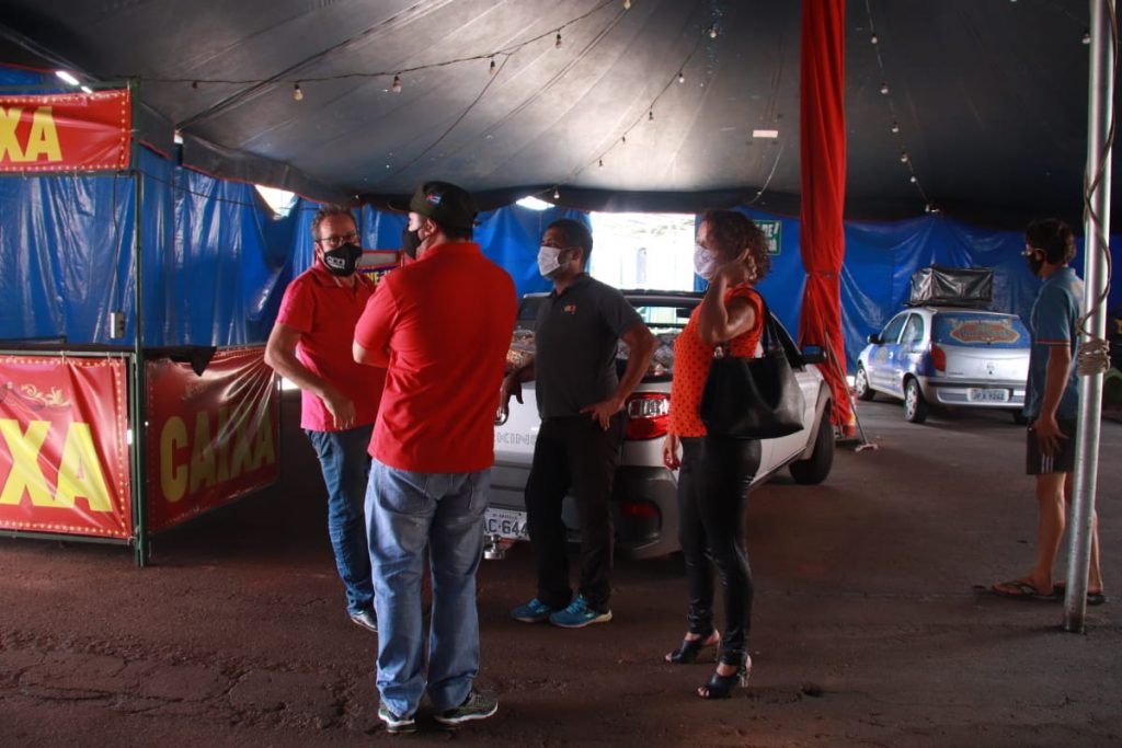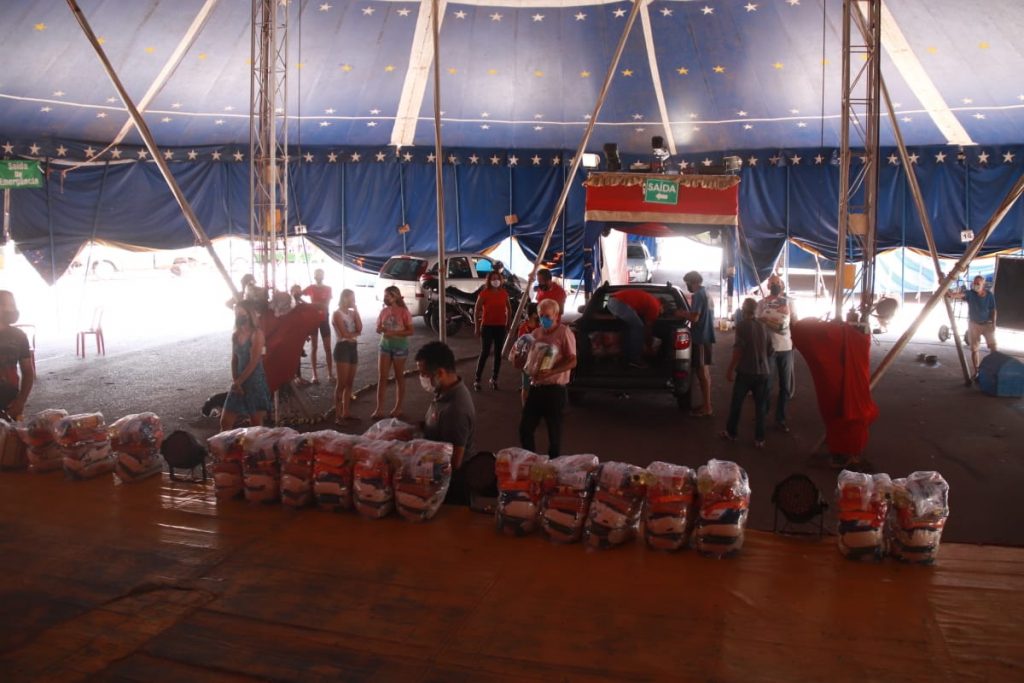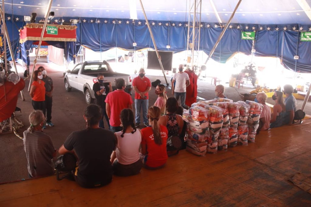 Mais uma ação da campanha “Quem tem fome tem pressa” foi realizada na manhã desta quarta-feira (31). O Comitê de Solidariedade Bancária de Combate ao Coronavírus do Sindicato visitou o Circo Real Português, instalado ao lado do estádio Serejão, em Taguatinga Norte, para entregar 30 cestas básicas de alimentos e itens de higiene.