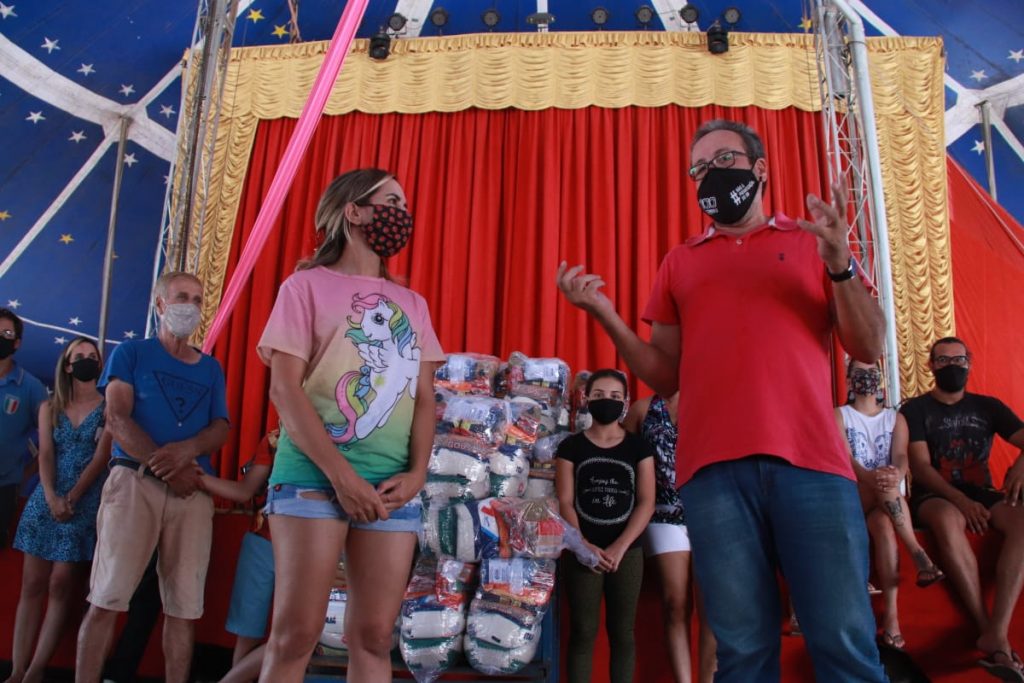 Juliana agradeceu a iniciativa do Sindicato: “O setor cultural está passando por uma situação muito difícil. Mas Deus não nos desampara e sempre coloca pessoas para nos amparar, como é o caso do Sindicato, que, com a doação dessas cestas, vai beneficiar 10 famílias que vivem exclusivamente do circo”.