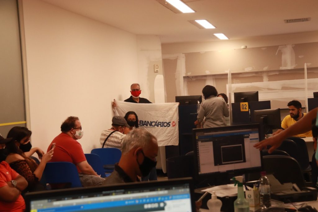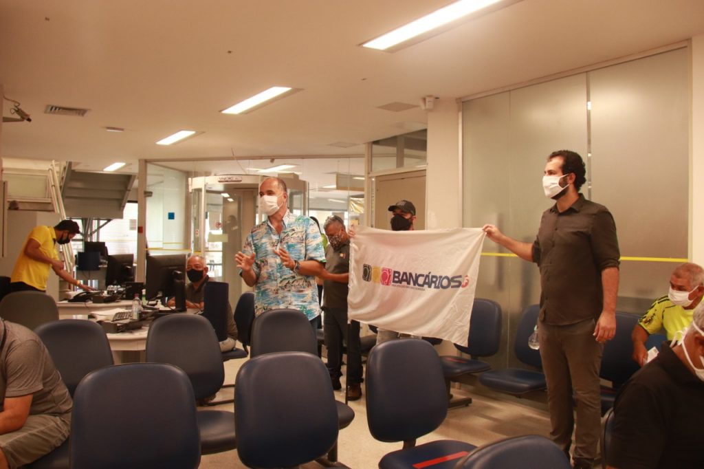 “Conforme deliberado em assembleia realizada ontem (25), estamos na luta, aumentando a pressão sobre os bancos e dialogando com a população, para que possamos ter uma equação de apoio para que as reivindicações dos bancários e bancárias sejam atendidas de forma adequada”, destacou o presidente do Sindicato, Kleytton Morais. Ele ressaltou a importância desses trabalhadores, “que desempenham atividades essenciais e não fogem às suas responsabilidades como, por exemplo, na atuação firme no atendimento à sociedade no pagamento dos benefícios emergenciais”.