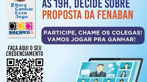 O Sindicato convoca todos os bancários, de bancos públicos e privados, para assembleia geral extraordinária que será realizada nesta sexta-feira (26), em formato remoto, às 19h, em primeira convocação, ou às 19h30, em segunda e última convocação, quando a categoria vai avaliar e deliberar acerca da proposta apresentada pela Fenaban (Federação Nacional dos Bancos) na mesa de negociação da Campanha Nacional 2022.