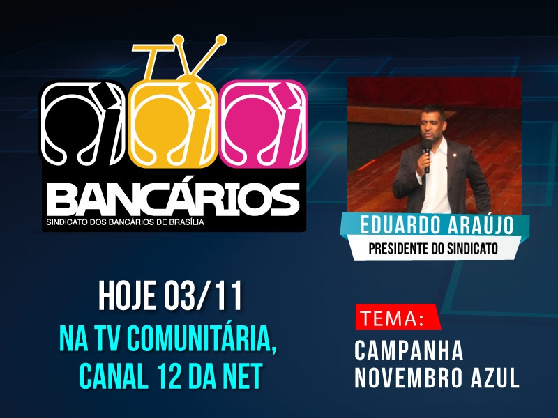 Eduardo Araújo, presidente do Sindicato, foi o convidado do programa TV Bancários da TV Comunitária da sexta-feira (3) para falar da campanha Novembro Azul. A campanha representa a luta contra o câncer de próstata e estimula a participação da população, empresas e entidades em prol da saúde dos homens. O Sindicato além de apoiar, divulga a iniciativa que pode salvar milhares de vidas.