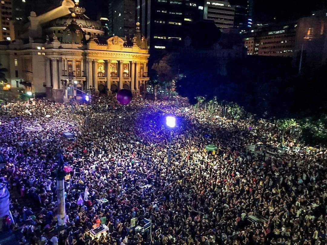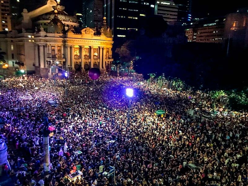 Partindo da Assembleia Legislativa do Rio, uma marcha segue para a Cinelândia, no centro da cidade.