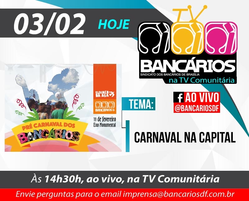 A participação do Sindicato no Carnaval da Capital e os agitos de uma das festas mais animada do país serão as atrações do TV Bancários na TV Comunitária dessa semana.