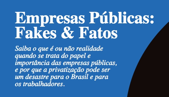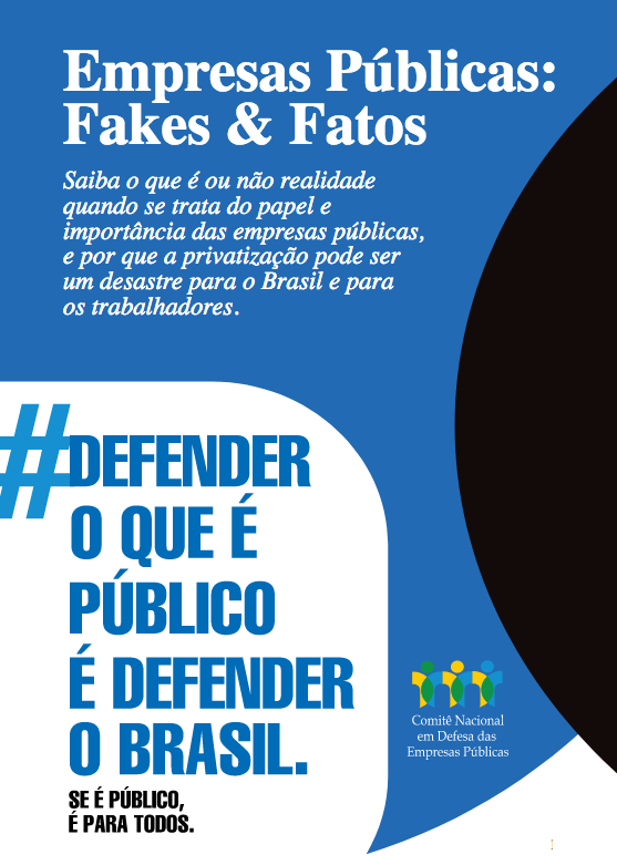 O Comitê Nacional em Defesa das Empresas Públicas produziu e começa a divulgar nesta quarta, 17, a cartilha Empresas Públicas: Fakes & Fatos, composta por 10 itens que desmistificam e esclarecem questões relativas às estatais, tais como lucratividade, concorrência, corrupção e soberania, entre outros.
