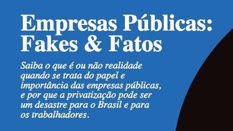 O Comitê Nacional em Defesa das Empresas Públicas produziu e começa a divulgar nesta quarta, 17, a cartilha Empresas Públicas: Fakes & Fatos, composta por 10 itens que desmistificam e esclarecem questões relativas às estatais, tais como lucratividade, concorrência, corrupção e soberania, entre outros.