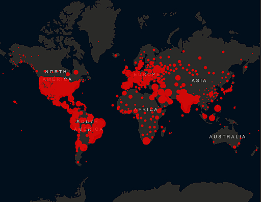 Os Estados Unidos seguem como o país com maior número de casos e mortes, 5.962.057 infectados e 182.785 óbitos. O Brasil é o segundo na lista com 3.846.153 de casos e 120.262 mortes. A Índia vem em terceiro com 3.542.733 de casos e 63.498 mortes.