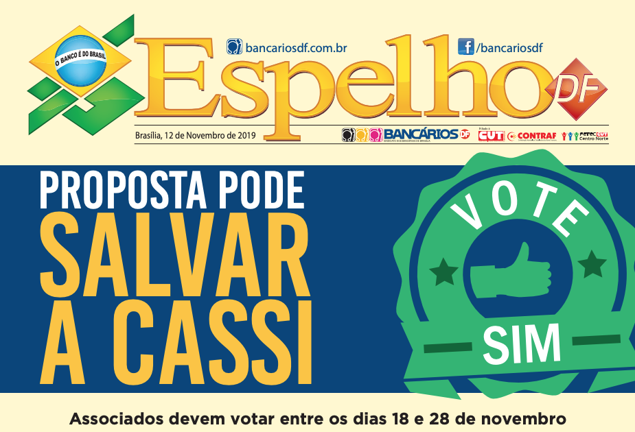 Está marcada para os dias 18 a 28 de novembro consulta ao Corpo Social da Caixa de Assistência dos Funcionários do Banco do Brasil (Cassi) sobre a proposta de sustentabilidade da entidade elaborada e aprovada pela direção do plano. O Sindicato dos Bancários de Brasília orienta o voto SIM na proposta.