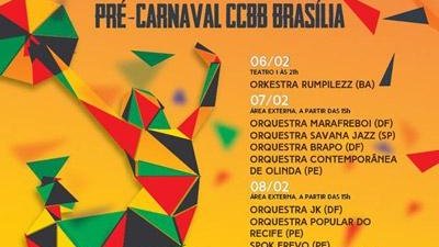 No sábado (7), os foliões irão se divertir na área externa do CCBB, a partir das 15h, sob o comando das orquestras Marafreboi e Brapo, do Distrito Federal; Savana Jazz, de São Paulo; e Contemporânea de Olinda, de Pernambuco.