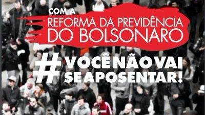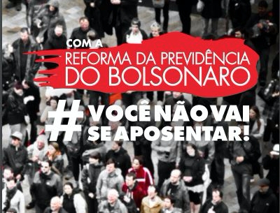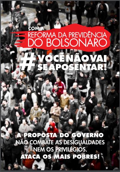 Com o título “Com a reforma da Previdência do Bolsonaro você não vai se aposentar” e o subtítulo “A proposta do governo não combate as desigualdades nem os privilégios. Ataca os mais pobres!”