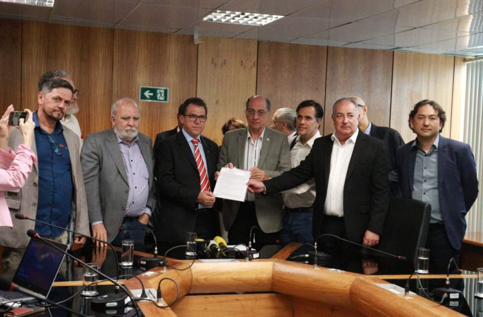 Sergio Nobre, e os presidentes e representantes da Força Sindical, UGT, CTB, CSB, NCST, Publica, Intersindical Central da Classe Trabalhadora, além do diretor técnico nacional do Departamento Intersindical de Estatística e Estudos Socieconômicos (Dieese), Fausto Augusto Jr., apresentaram o documento que tem 16 páginas e foi elogiado pelo ministro Luiz Marinho.
