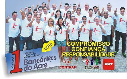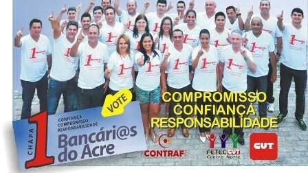A Chapa 1 "Compromisso, Confiança e Responsabilidade", encabeçada por Edmar Batistela, funcionário do HSBC e atual presidente, venceu as eleições à direção do Sindicato dos Bancários do Acre (SEEB-AC) para o triênio 2015/2018 com quase 65% dos votos válidos.