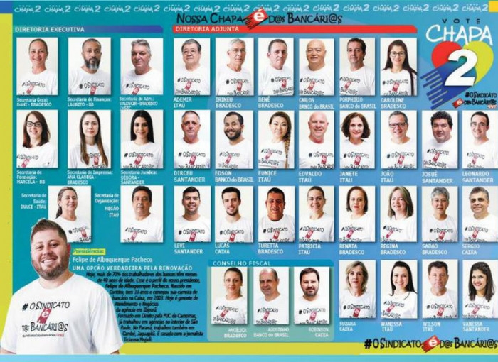 Chapa “O Sindicato é dos Bancários”, encabeçada por Felipe de Albuquerque Pacheco, empregado da Caixa Econômica Federal, comandará o sindicato até 2021