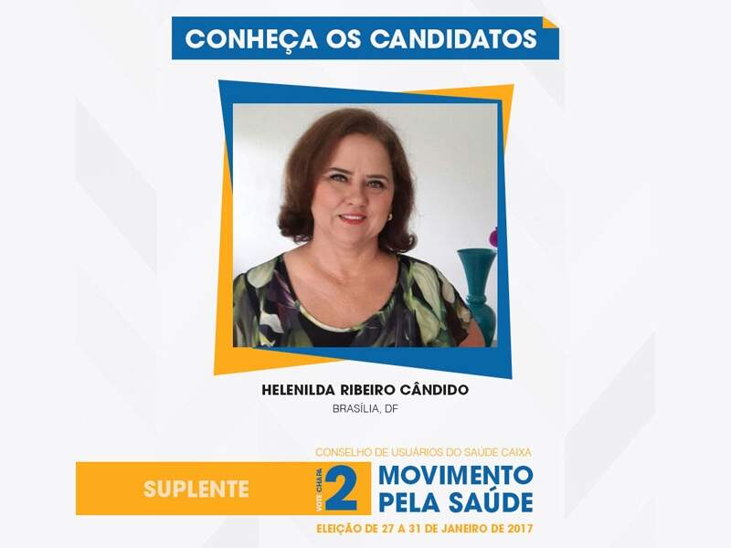 Além dela, vão integrar o Conselho de Usuários do Saúde Caixa Ivanilde Moreira de Miranda (SP); Euane Streicher Chatah, aposentada (SP); Lilian Minchin, (SP); Maria Izabel Menegatti (RJ); Edmar Martins André (ES); Zuleida Martins Rosa, aposentada (SC); Márcia Boiczuk Krambeck, aposentada (PR); Vera Lúcia Barbosa Leão, aposentada (GO); Paulo Moretti, aposentado (PE).