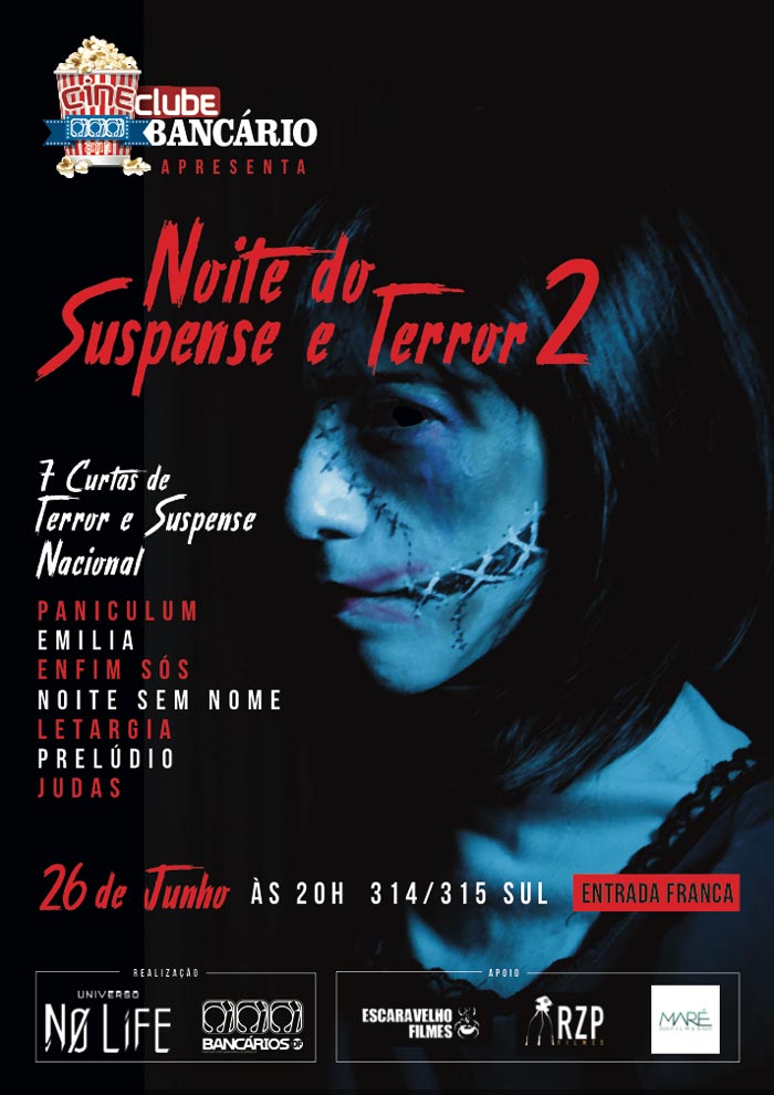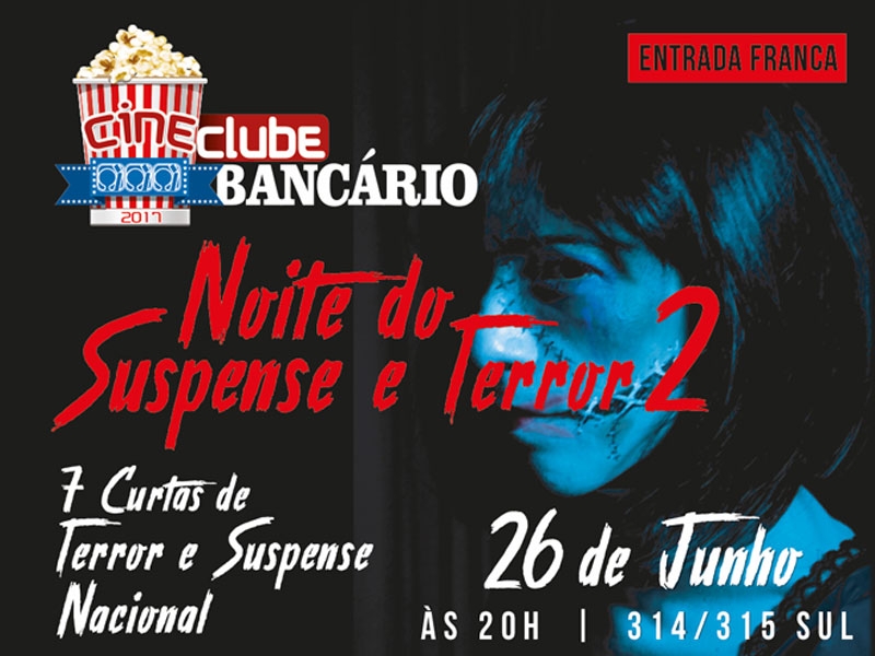 O Cineclube Bancário está de volta com a segunda mostra de cinema arrepiante -- Noite do Suspense e Terror 2, que será exibido no dia 26 deste mês, às 20h, no Teatro dos Bancários (EQS 314/15 Sul), na sede do Sindicato. A entrada é gratuita.