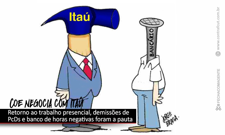 A Comissão de Organização dos Empregados (COE) do Itaú se reuniu com a diretoria do banco, na tarde desta quarta-feira (9), para negociar o retorno ao trabalho presencial, cobrar o fim das demissões entre as pessoas com deficiência (PCDs) e discutir a compensação do banco de horas negativas.