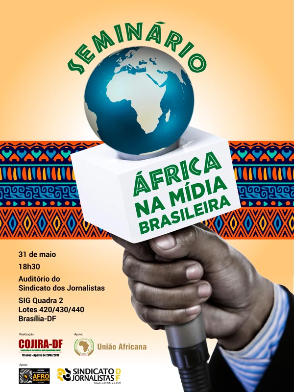A Comissão de Jornalistas pela Igualdade Racial do Sindicato de Jornalistas do Distrito Federal (Cojira-DF) vai promover na próxima quarta-feira (31) o seminário África na mídia brasileira. O evento será realizado às 18h30, no auditório do sindicato (SIG Quadra 2, Lotes 420/430/440).