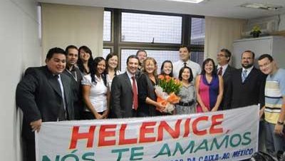 Dia 10 de dezembro foi um data marcante para bancária Helenice Pereira Queiroz. Depois de 25 anos de trabalho na Caixa ela esteve no Sindicato para homologar sua aposentadoria e foi surpreendida com a presença de cerca de 20 colegas de serviços que vieram prestigiar o momento.