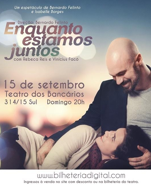 Os atores Rebeca Reis e Vinícius Facó apresentam o espetáculo “Enquanto estamos juntos”, no domingo (15), às 20h, no Teatro dos Bancários. Eles interpretam o casal Klei e Júlia, que se conhecem em um bar e se apaixonam instantaneamente. A partir daí, iniciam um romance com todos os detalhes e percalços que um relacionamento oferece.