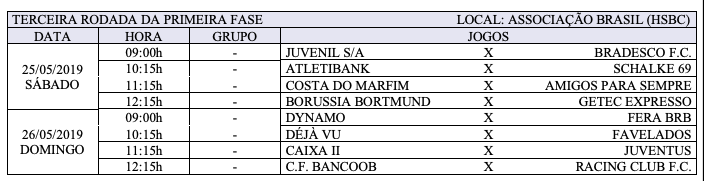 Os atletas voltam ao campo neste fim de semana, dias 25 e 26, a partir das 9h, para a terceira rodada da primeira fase. Veja quem joga: