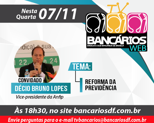 Com a troca de governo, a reforma da Previdência Social volta a ser o foco de debates no Congresso Nacional e a ocupar espaço na mídia. Para falar sobre o tema, o programa TV Bancários Web conversa nesta quinta-feira (8) com o vice-presidente de Assuntos da Seguridade Social da Associação Nacional dos Auditores Fiscais da Receita Federal (Anfip), Décio Bruno Lopes.
