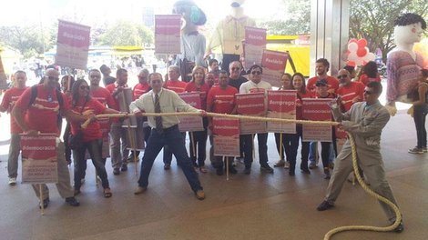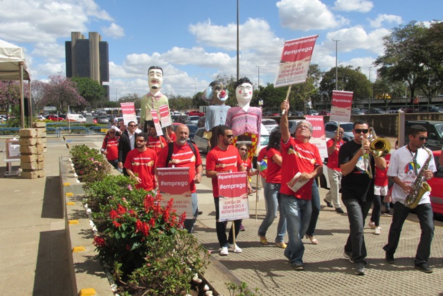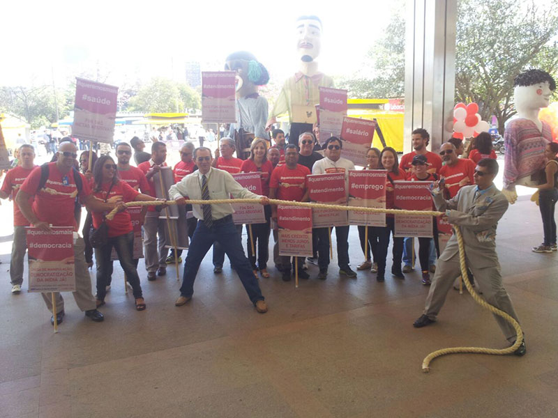 O ato foi marcado por apresentações de grupos de música e de dança e de bonecos gigantes. Com cabo de guerra, faixas, cartazes e exemplares do Informativo Bancário, dirigentes sindicais cobraram o fim das demissões, da rotatividade, do assédio moral e das metas abusivas. Também exigiram melhores condições de trabalho e aumento real.