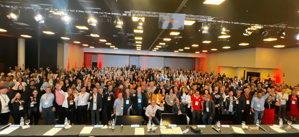 Ela ressaltou que, para isso, nas eleições deste ano, os trabalhadores, por sua vez, têm a obrigação de eleger candidatas e candidatos que tenham compromisso com a classe trabalhadora. “Ao final de nossa conferência, precisamos voltar pra casa e levar essa discussão para nossas bases. Não podemos deixar que sejam eleitos representantes do 1% da população. Temos que eleger candidatas e candidatos comprometidos com nossa pauta de reivindicações. Sem esquecer que nossa campanha não é apenas corporativa, mas sim uma campanha para o Brasil que trabalha e também para o mundo”, destacando que o mundo não pode ser calar diante do genocídio cometido por Israel contra o povo palestino.