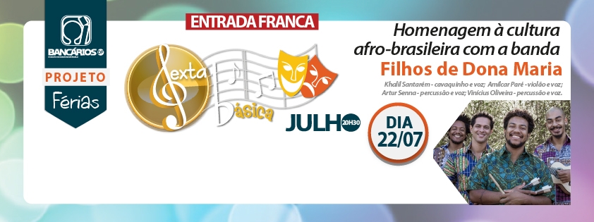 Dando sequência à programação do Sexta Básica especial de férias, o Sindicato apresenta no próximo dia 22 a banda Filhos de Dona Maria, numa grande homenagem à cultura afro-brasileira.