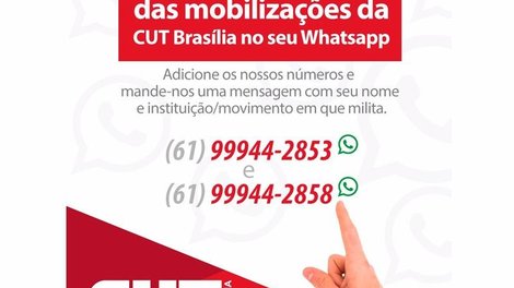 Para receber essas informações, basta adicionar os números da central sindical (61-99944-2853 ou 61-99944-2858) no celular e enviar uma mensagem com seu nome e instituição ou movimento em que milita.