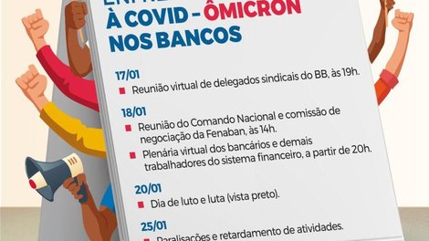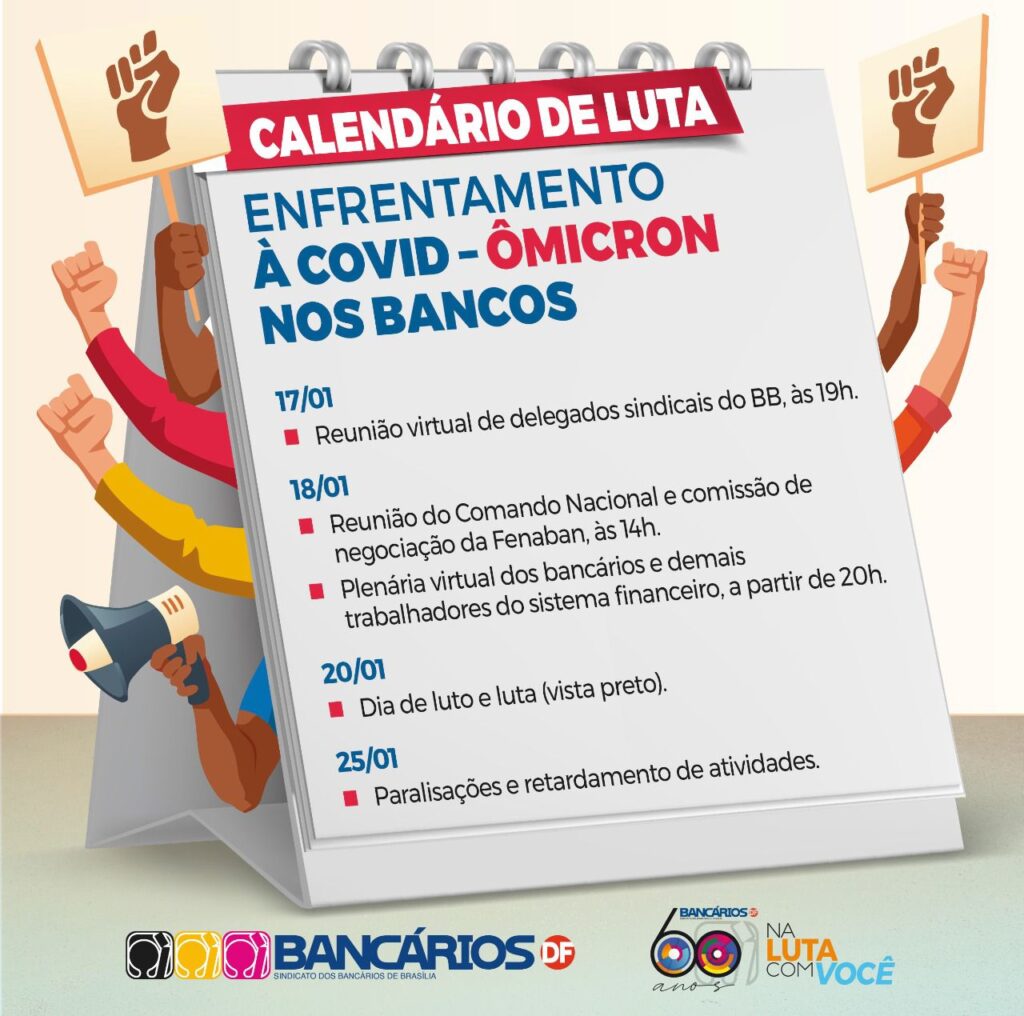 “Diante da injustificada intransigência dos bancos, face a explosão de casos de covid e influenza em todos os setores bancários, seja nas sedes administrativas, onde o trabalho presencial é injustificado dado que vinha sendo realizado durante a pandemia sem prejuízo à produtividade, é fundamental uma revisão imediata nesse período para que até mesmo os bancos se entendam e dialoguem entre si aqui no DF. Além dos casos dentro das instituições, as autoridades de saúde apontam para uma explosão massiva de contágios em fevereiro, que vai sobrecarregar inclusive a rede de atendimento médico”, alerta Kleytton Morais, presidente do Sindicato.