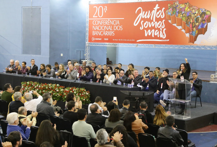 Para Adriana Nalesso, presidenta do Sindicato dos Bancários do Rio de Janeiro e representante da Articulação Bancária, a 20ª Conferência Nacional acontece em um momento totalmente diferente. “É um momento de reflexão, porque esse momento exige de cada um de nós muita sabedoria e muita tranquilidade. Esse é um momento de grandes desafios para a classe trabalhadora. Isso torna este ano fundamental, fundamental para nós nos reinventarmos, fundamental para nós dialogarmos com a sociedade, pois não é este modelo econômico que o golpe nos impôs que nós trabalhadores defendemos. O modelo que nós trabalhadores temos de defender é um modelo de desenvolvimento, é um modelo com empresas estatais fortes, que são fundamentais para o desenvolvimento do Brasil.”