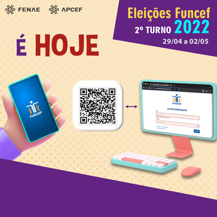 Começa às 11h desta sexta-feira (29) e vai até às 18h de segunda-feira (2) o segundo turno das Eleições Funcef 2022. Serão definidas as duas vagas para o Conselho Deliberativo, uma para a Diretoria de Administração e Controladoria e uma para a Diretoria de Benefícios. A Federação Nacional das Associações do Pessoal da Caixa Econômica Federal (Fenae) e o Sindicato reforçam o apoio aos candidatos do movimento “Juntos! A Funcef é dos Participantes” – mais votados durante o primeiro turno.