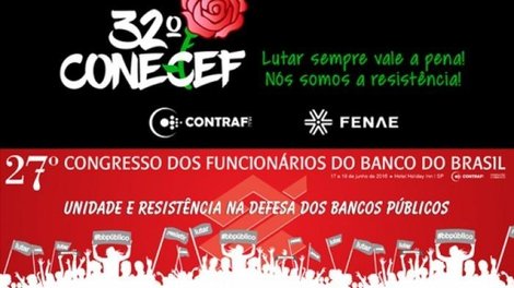 O 27º Congresso Nacional dos Funcionários do BB e o 32º Congresso Nacional dos Empregados da Caixa (Conecef) ocorrem no Hotel Holiday Inn, no Anhembi, em São Paulo. Com o objetivo de debater a grande ameaça que Michel Temer representa ao patrimônio público, a Contraf-CUT realiza também, no mesmo local, o 1º Seminário Nacional em Defesa do Bancos Públicos. Além dos bancários do BB e da Caixa, de outros bancos públicos e privados, o Seminário irá reunir diversos atores da sociedade civil, movimentos sindicais, sociais, populares e parlamentares.