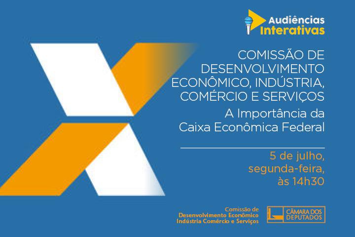 Nesta segunda-feira (5), logo mais às 14h30, a Comissão de Desenvolvimento Econômico, Indústria, Comércio e Serviços da Câmara dos Deputados debate a importância da Caixa Econômica Federal.