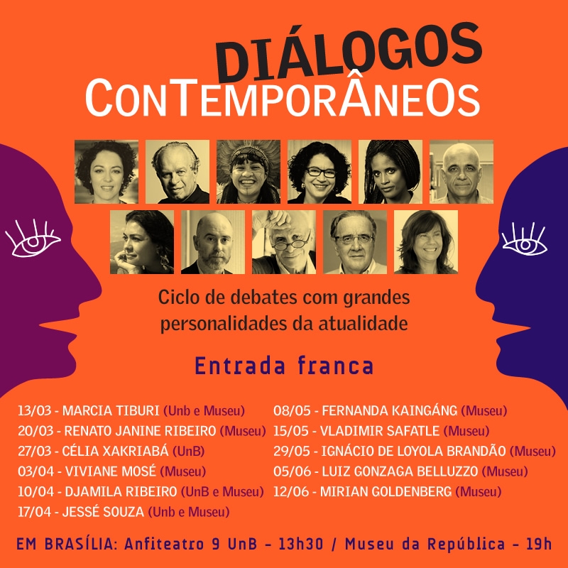 Por meio de uma série de dez conferências, os Diálogos Contemporâneos buscam debater essas e outras questões que envolvem a complexidade, os problemas e a diversidade do Brasil atual. O evento será realizado no Museu Nacional de Brasília e na Universidade de Brasília (UnB), entre 13 de março e 12 de junho. A entrada é franca e sujeita à lotação.