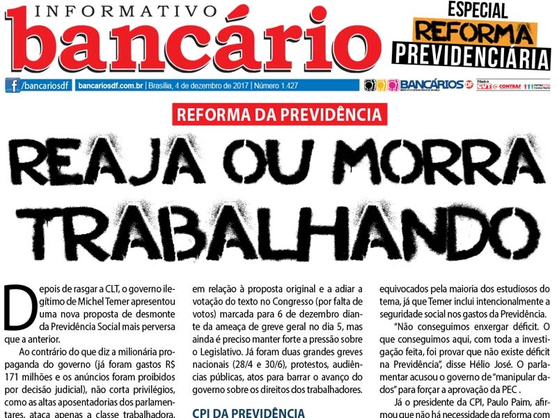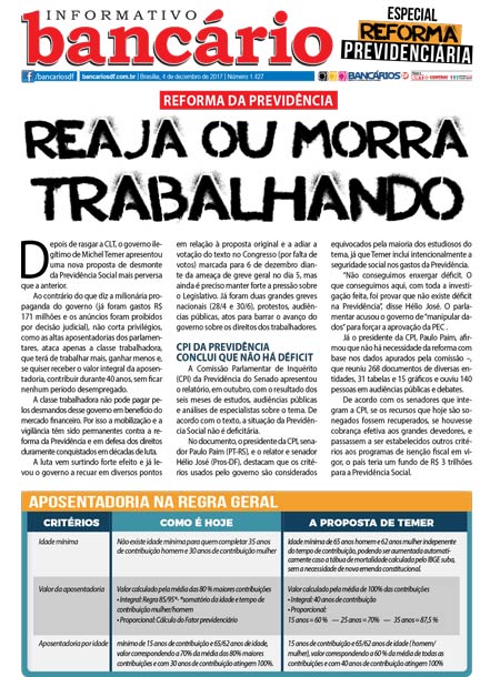 Edição especial traz um panorama das perdas embutidas na reforma da Previdência de Temer, que ameaça acabar com as aposentadorias. Clique aqui para baixar o PDF
