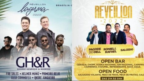 Laguna Gastrobar, às 22h, (Clube Ases, ao lado do Píer 21), às 22h. Open Bar Premium, área 100% coberta com muito conforto na melhor vista do Lago Paranoá, além de uma queima de fotos exclusiva. As atrações são George Henrique & Rodrigo, Guga Cammafeu, Primeiro Beijo, André Junqueira, Fab Sales e Helmer Muniz.