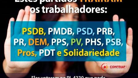 Com essa lista, a Contraf-CUT orienta federações e sindicatos a intensificarem a pressão sobre os deputados federais, especialmente sobre os que votaram a favor do texto-base do PL 4330.