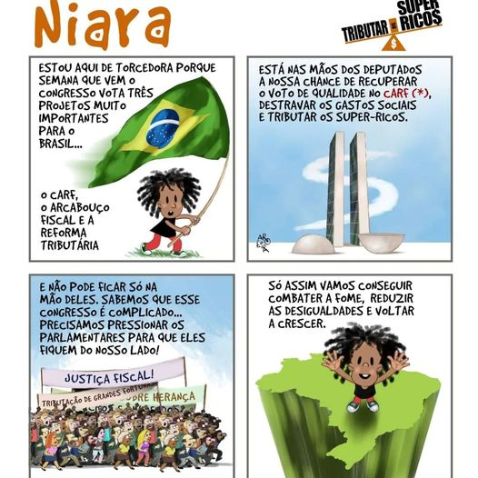 Assim, a personagem Niara, uma menina negra criada pelo cartunista Aroeira, afirma que é necessário pressionar o Congresso, para que os parlamentares votem de acordo com os interesses da maioria da população: