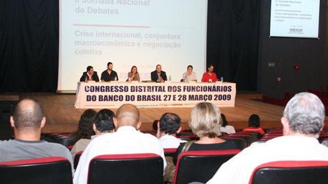 No grupo que tratou do papel do Banco do Brasil, as discussões foram norteadas pelo conteúdo político do manifesto dos movimentos sociais que convoca ato para esta segunda-feira, dia 30, em frente ao Banco Central, “contra a crise e as demissões, por emprego e salário, pela manutenção e ampliação de direitos, pela redução dos juros e da jornada de trabalho sem redução de salários, pela reforma agrária e em defesa dos investimentos em políticas sociais”. Assim os funcionários apontam para a mudança do modelo de banco adotado pelo BB, com o norte da instituição passando a ser ditado pelo social e não mais pelo mercado.