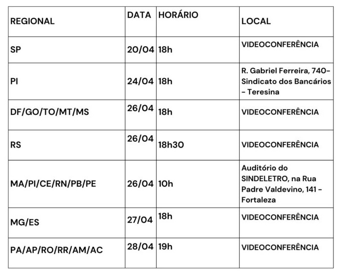 Plenárias Regionais começaram nesta semana no Paraná, Santa Catarina, São Paulo e Rio de Janeiro