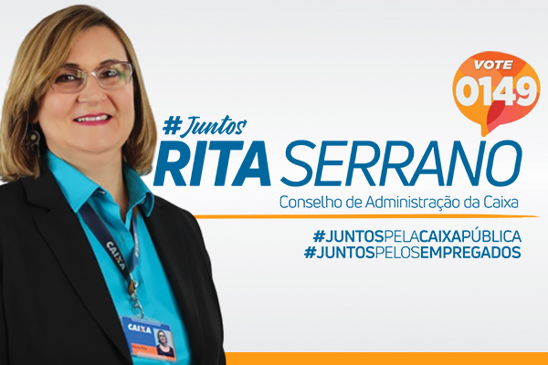 Empregada da Caixa desde 1989, Rita Serrano participa do CA desde 2014, quando ocupou o cargo de suplente, sendo eleita titular em 2017. Mestre em Administração e graduada em Estudos Sociais e História, a atual conselheira tem longa trajetória no movimento sindical e social. Foi presidente do Sindicato dos Bancários do ABC entre 2006 e 2012, coordena desde 2015 o Comitê Nacional em Defesa das Empresas Públicas e atualmente faz parte do Conselho Fiscal da Fenae.