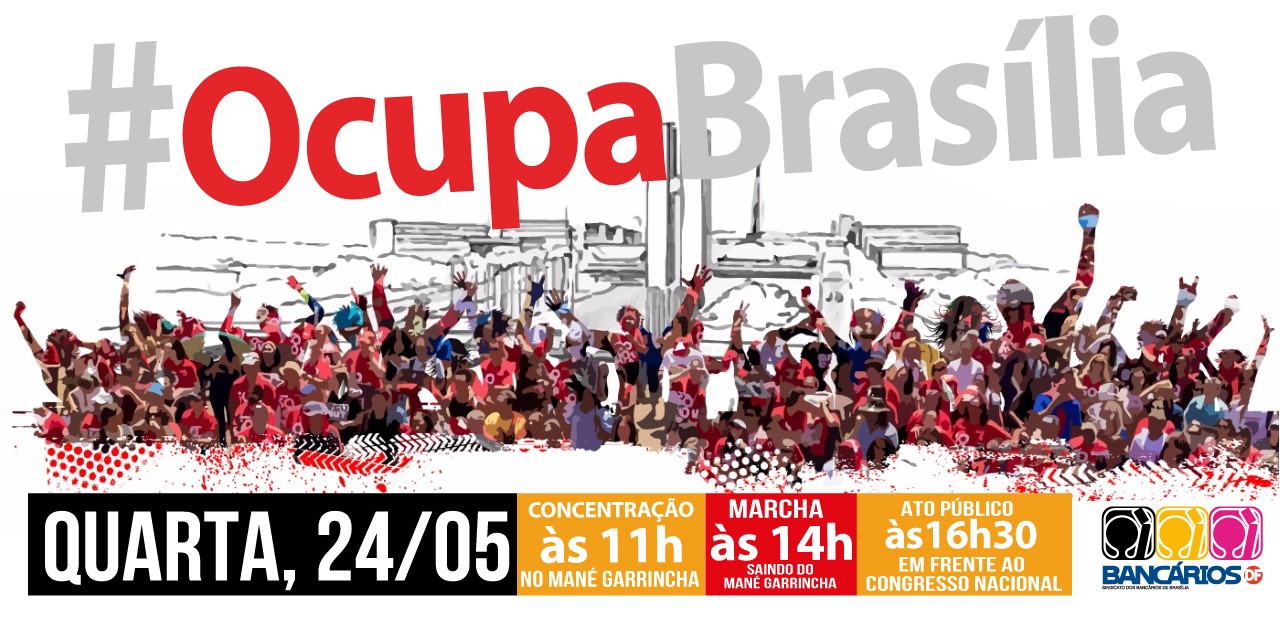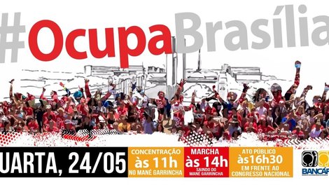 No dia 24 de maio, vamos ocupar Brasília para, mais uma vez, deixarmos claro que a classe trabalhadora, os movimentos sociais e todo o conjunto da sociedade repudiam toda a retirada de direitos. Vamos Ocupar Brasília e dizer #NãoaosladrõesdeDireitos. Houve alteração dos horários devido ao aumento do número de participantes que confirmaram presença, e a concentração agora está prevista para as 11h, no Estádio Mané Garrincha.