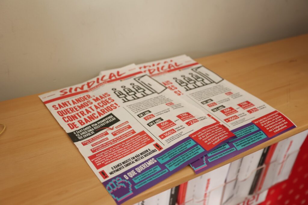 Nos locais de trabalho, dirigentes do Sindicato e da Fetec Centro Norte dialogaram abertamente com os trabalhadores sobre os problemas decorrentes da reestruturação que assola o quadro funcional do banco espanhol há anos. Enquanto os lucros seguem na casa dos bilhões, o Santander segue com uma política de demissão e desrespeito.