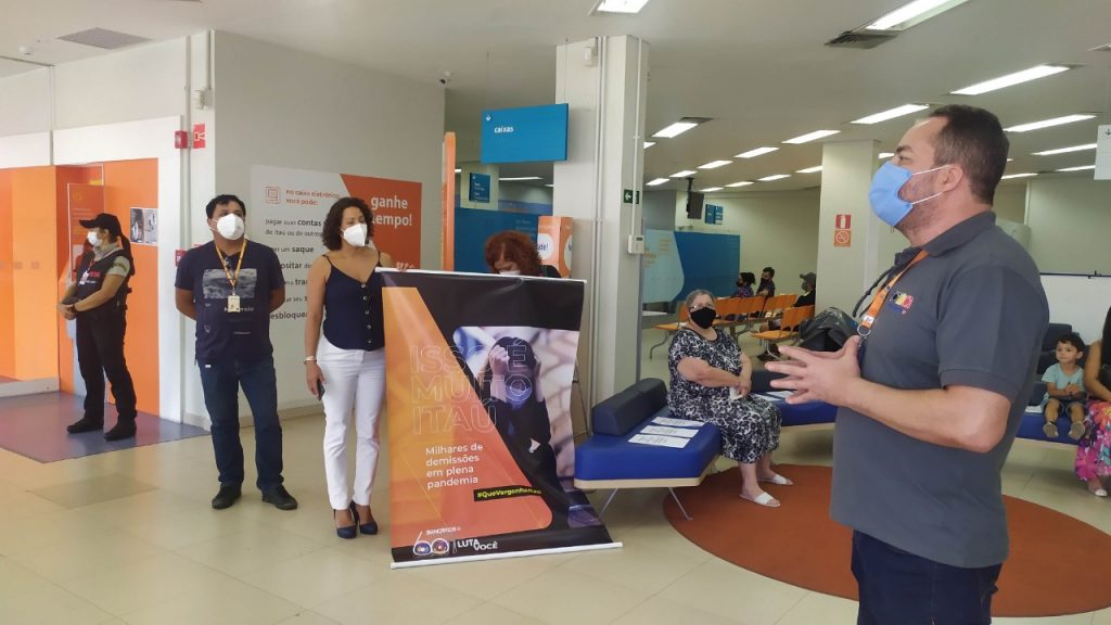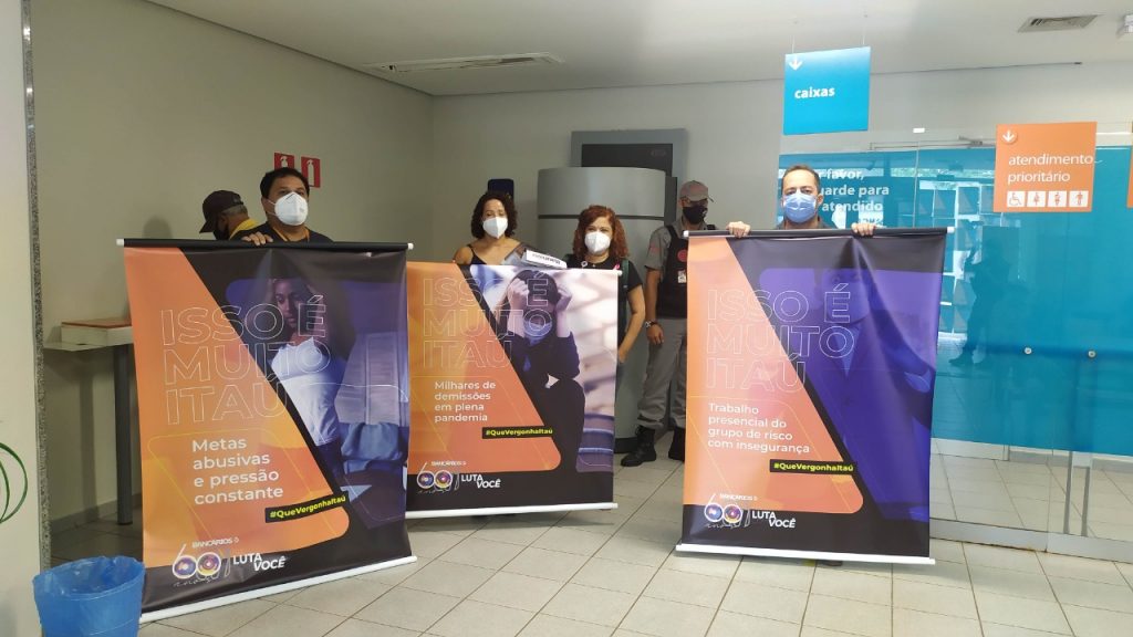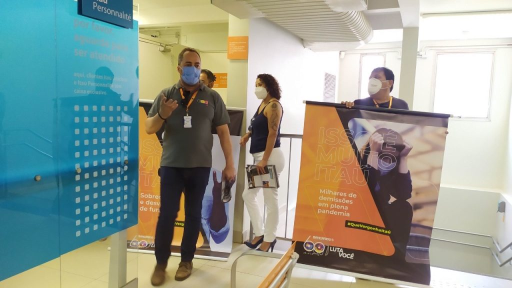 Sandro Oliveira, diretor do Sindicato e bancário do Itaú, questiona a postura adotada pelo banco e chama os colegas à mobilização. “O que temos visto é que o Itaú não dá valor à vida dos bancários e bancárias, só dá valor ao lucro. Desrespeita o trabalhador, descumpre o acordo de não demitir na pandemia e cobra metas inatingíveis. Para nós, a vida vale mais, e nossa luta só vai cessar quando o Itaú entender o recado”, comentou o dirigente.
