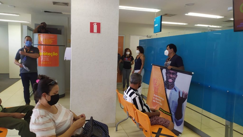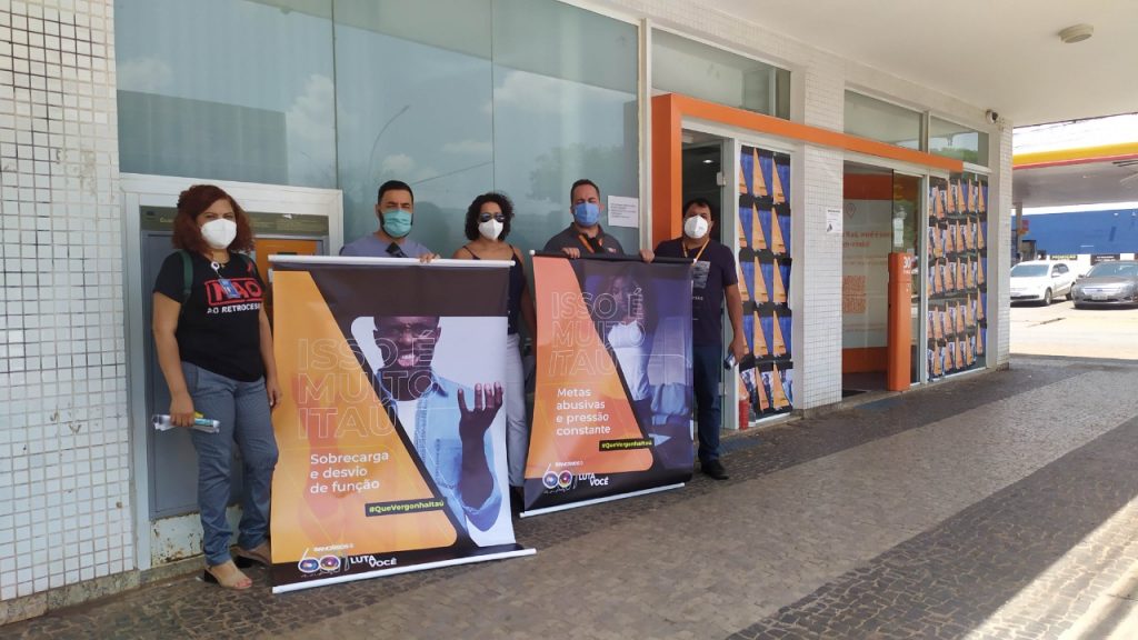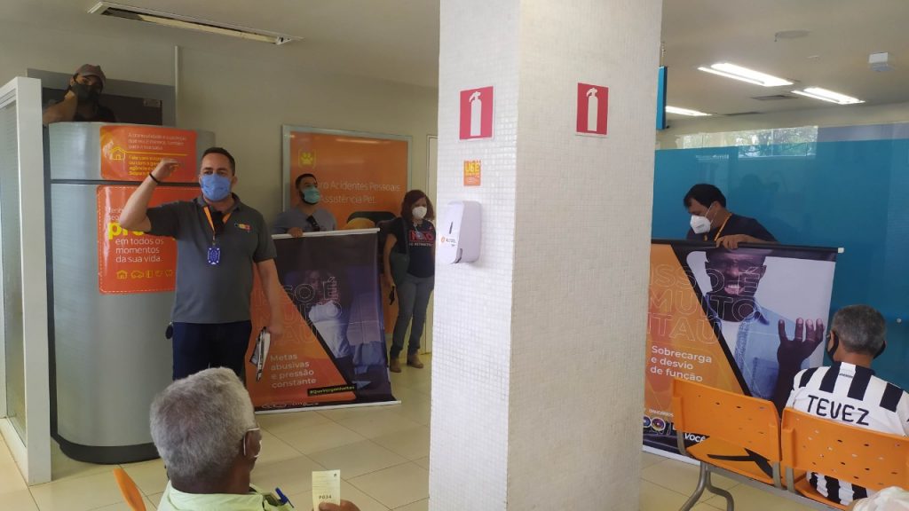 A primeira semana de outubro começou com protesto dos bancários e bancárias do Itaú em todo o país. No DF, a atividade se concentrou nas agências de Ceilândia e Taguatinga para denunciar o descumprimento do acordo por parte do banco que, durante a pandemia, demitiu trabalhadores. O assédio para alcançar metas abusivas também foi pauta do ato realizado na manhã desta segunda-feira (4). Entre as ações programadas para o Dia Nacional de Luta, houve um tuitaço, com a hashtag #QueVergonhaItaú, que chegou a ficar entre os assuntos mais comentados no Twitter.