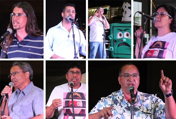 O Sindicato desembarcou no início da noite desta quarta (23) na Rodoviária do Plano Piloto, levando informações à população sobre a Campanha Nacional 2015, cujo mote é ‘Você no aperto e os bancos não param de ganhar. Sugadores’.