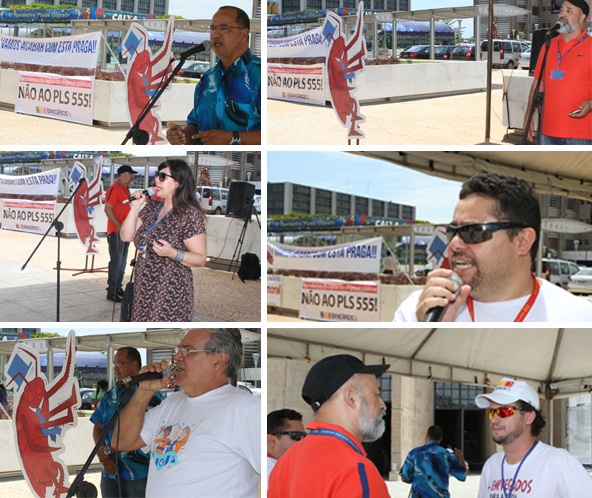 O Sindicato e outras entidades sindicais participaram, nesta segunda-feira (14), do Dia Nacional de Luta em Defesa da Caixa 100% pública e contra o PLS 555/2015, que abre o capital das empresas estatais.