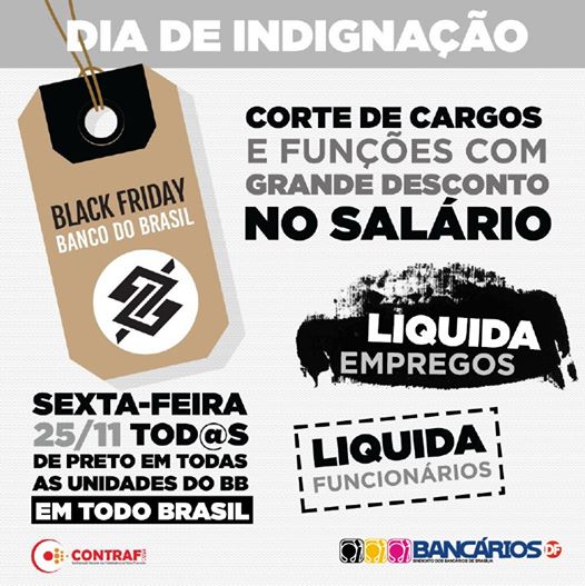 Para protestar contra essas medidas, bancárias e bancários do BB em todo o país vestirão preto nesta sexta-feira (25). Será o "Dia da Indignação", numa alusão à Black Friday do banco, que pega carona na temporada de liquidação oferecida neste dia por outras empresas.