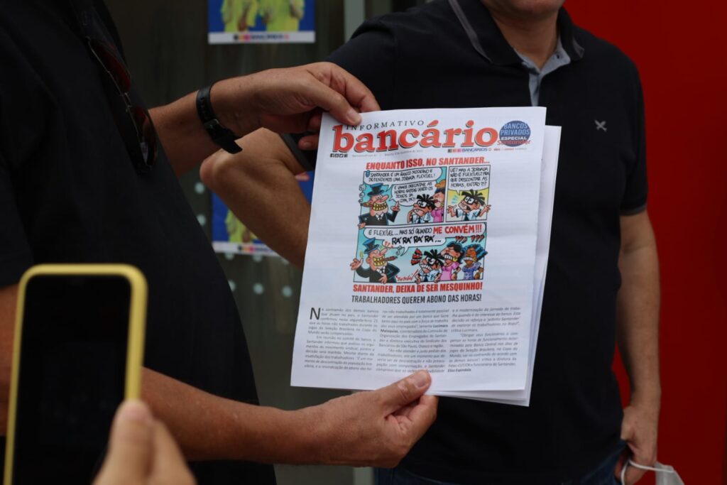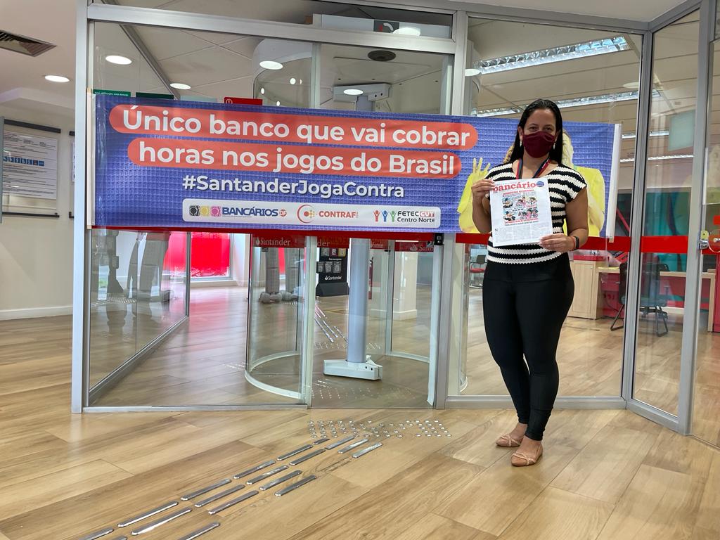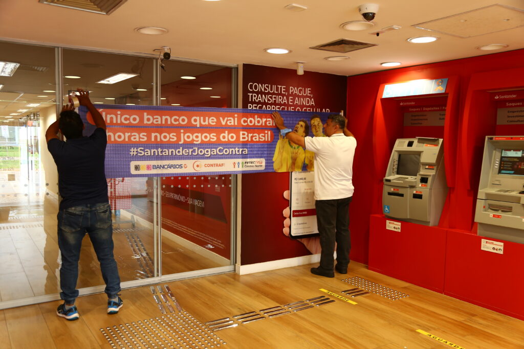 “O banco priva seus funcionários de torcer pela seleção e vai contra a cultura do futebol no nosso país. O Santander deveria liberar os bancários para acompanhar os jogos. A atividade conta com a participação e o apoio dos bancários do Santander, e nossa reivindicação é endossada por colegas de outros bancos”, conta José Anilton, funcionário do Santander e diretor da Federação dos Trabalhadores em Empresas de Crédito do Centro Norte (Fetec-CUT/CN).