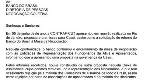 O documento preserva o princípio da solidariedade, segundo o qual os associados contribuem de forma proporcional ao salário, independentemente da idade ou condição de saúde, e defende a manutenção da Cassi sob o comando dos representantes dos associados, sendo gerida de forma paritária, entre outros pontos.